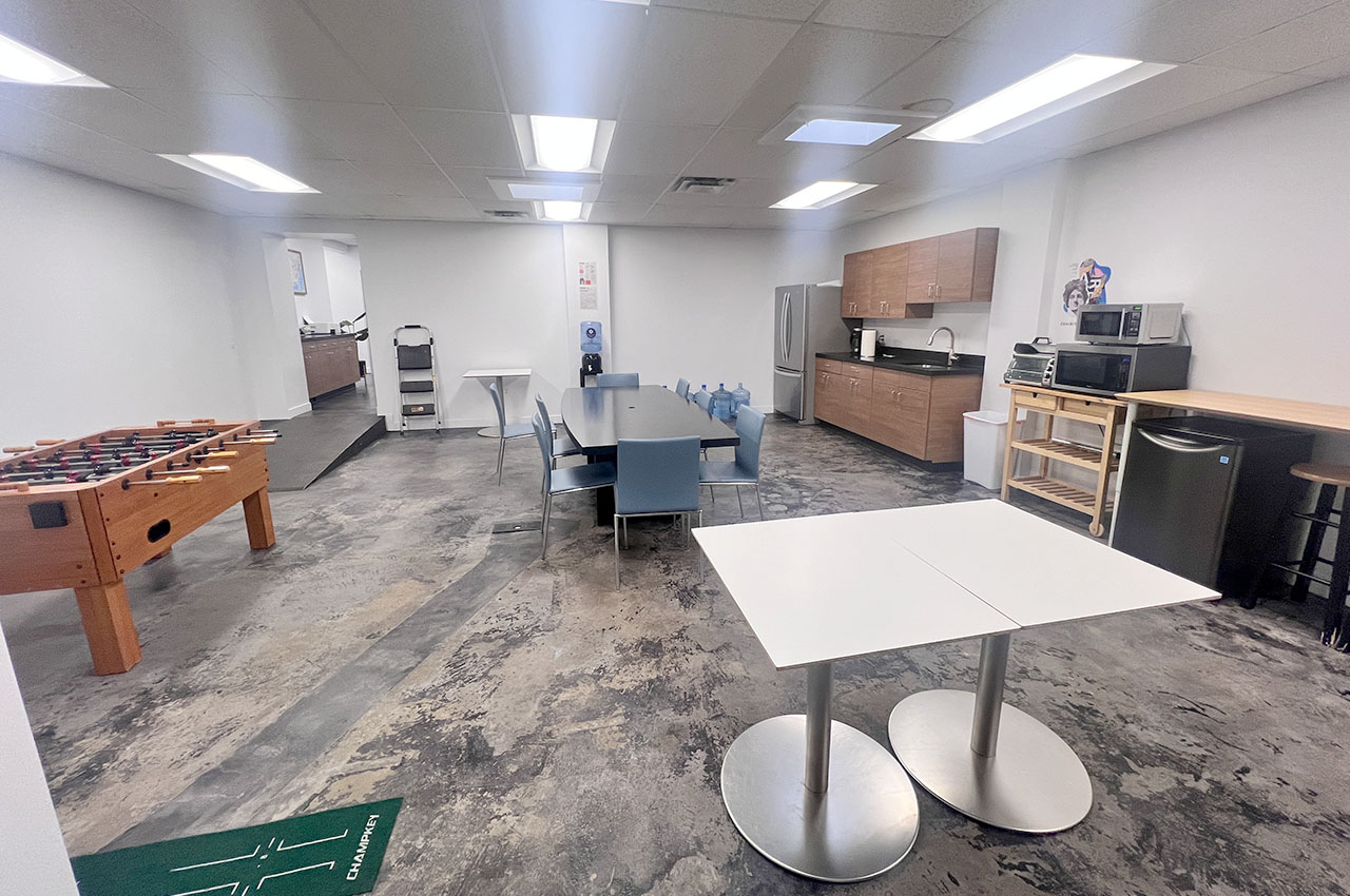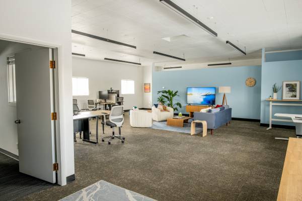 Newly renovated with abundant natural light, this mezzanine office space is ideal for startups, featuring flexible floor plans for desks and a lounge, private suites, and comprehensive amenities including a kitchen, high-speed internet, and ample parking.